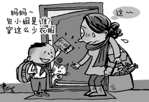 陈女士的儿子壮壮(化名)今年7岁,日前,陈女士接壮壮放学回家,壮壮开门时,在门缝里抽出了一张色情小广告。“妈妈,包小姐是谁?上面还有电话号码呢。”壮壮好奇地问。陈女士不知如何解释,就说“包小姐”是一个姓包的阿姨。壮壮追问:“这个照片是不是包阿姨?包阿姨找你干吗呢?”陈女士只好硬着头皮回答:“照片上是包阿姨,她找我去逛街……”