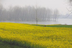 犷放沙河身影俏。鸭嘴寻鱼,尽显天机奥。油菜花黄坡洼笑,春催桃李风流耀。