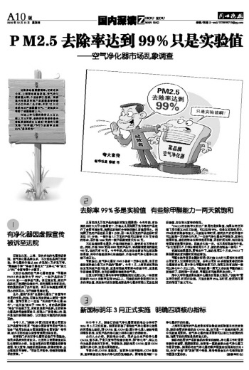 PM2.5去除率达到99%只是实验值