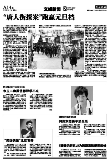 由陈思诚执导,王宝强、刘昊然、陈赫、肖央、小沈阳等主演的悬疑喜剧《唐人街探案》成为元旦档最大赢家,不仅连续3日坐稳单日票房冠军位置,口碑也以7.6分秒杀同档期的另一部喜剧《一念天堂》,上映4天票房已达4.22亿。