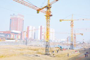 塔吊林立,摆臂作业;挖土机、大翻渣土机轰鸣,挖土清运,忙碌不停;工人清土方、做基槽、铺垫层,施工紧张有序。这是1月5日上午,周口市区大庆路南段周口龙都红星广场项目的施工场景。