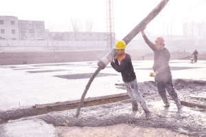 周口市区黄河路与工农路交会处的高大围挡遮着了龙都红星广场项目工地里的紧张与壮观。该项目已进入紧张施工阶段,从西往东600余米长的地段,工程已全面布开。最西段是龙都红星广场的红星美凯龙主题馆,目前打桩完毕,进入了挖土方阶段;往东是红星美凯龙精品馆,这里是目前工程的主战场,打桩完毕后挖土方也已结束,工人们正忙着清基槽做垫层;再往东,也就是大庆路正对的地段,这里是项目广场所在地,大型机械成为这里的主角,它们正在清土方,工人做基层找平工作;最东面,打桩机在做打桩的扫尾工作,挖土机、大翻渣土机开始清运土方。