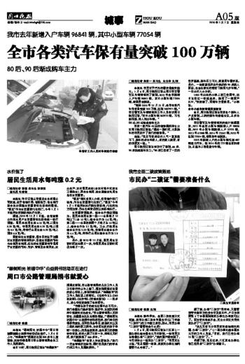 全市各类汽车保有量突破100万辆