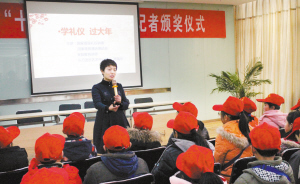 表彰仪式结束后,由本报邀请的国家高级礼仪讲师、东方语言艺术学校校长唐瑞华为本报200余名小记者和家长上了一堂精彩的文明礼仪课。课堂上,唐老师教给小记者一些基本的礼仪,如站姿、坐姿、行姿等,小记者积极地参与练习。