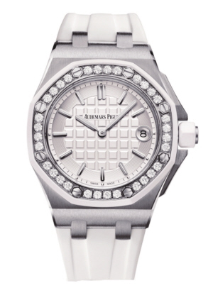 爱彼女人作为女性自我主张的代表,在男人统治的世界里,棱角分明,毫不妥协。作为爱彼皇家橡树离岸型女装腕表系列的最新成员,37毫米尺寸的女装表款备有18K玫瑰金及精钢两种款式。全新爱彼皇家橡树离岸型女装腕表在保留男款计时码表大胆设计的同时,采用了更为纤细精致的表壳,并于表圈点缀32颗明亮式切割美钻,带来非凡触感与视觉享受。此腕表亦追求截然不同的质感和深度,饰有螺旋纹的轨道式分钟刻度与著名“MégaTapisserie”超大格纹装饰环绕并置,白色橡胶材质表冠和表带为腕表添上现代女性魅力。(魏星)
