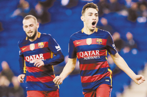 当地时间1月13日,巴塞罗那队球员穆尼尔在比赛中庆祝进球。当日,在2015/16赛季西班牙国王杯八分之一决赛次回合比赛中,巴塞罗那队客场以2∶0战胜西班牙人队,从而以6∶1的总比分晋级八强。新华社发