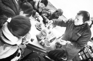 据了解,目前,王占领的“益丰”早餐店免费为舒庄乡一所小学的6名孤儿提供早餐,11岁的静静(化名)就是其中之一。8岁那年,静静的父亲因病离世。2014年,母亲离家出走后,静静跟随爷爷奶奶生活。当日早上,在学校副校长王建中的带领下,这6名孤儿来到位于舒庄乡十字街头的“益丰”早餐店免费用餐。看到孩子们到来,王占领停下手中的活儿,给他们盛胡辣汤、端茶鸡蛋(如图)。“给,一人一个茶鸡蛋,一人一碗汤,这儿还有煎包,不够吃接着盛。”王占领招呼孩子们。看着孩子们大口大口地喝汤,王占领的眼角有点儿湿润。吃完热乎乎的早餐,静静的脸变得红润起来。“在这里,我感受到了亲情,王大爷就像我的家人一样,我要好好学习,将来报答他。”静静懂事地说。