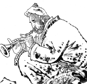 时间久了,唢呐王渐渐败下阵来。一则他年纪大了,体力不支,二则他会的曲子没有小唢呐多,最后不得不重复演奏一些曲子。眼看着观众一个个都到小唢呐的台子下,唢呐王突然吹奏出一个极高的声音,声震屋宇,随后吐出一口鲜血,倒在台上。