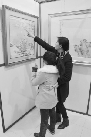 走进展厅,徜徉在“心迹双清”万胜华、宋野岩书画作品之间,感觉如一抹阳光照在心坎上,暖暖的,让人陶醉。“看了两位老师的作品,我从中学到了很多东西。”参观书画展的11岁女孩司佳告诉周口晚报记者,她非常喜爱画画,如今学习国画和素描已有两年时间。她的妈妈非常支持她画画。得知两位老师举办书画作品展的消息后,妈妈就带着她来参观(如图)。