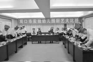 近日,周口市实验幼儿园进行了食堂人员刀工比赛。此次比赛旨在提高食堂人员切菜刀工技能,进一步提升食堂人员根据幼儿年龄特点进行精细化加工食品的水平,为进一步提供优质的后勤饮食保障打下了坚实的基础。记者 王珂 摄