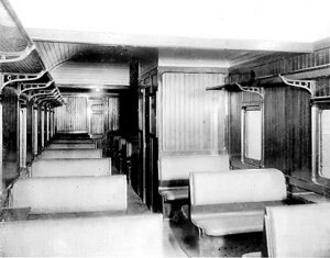 售票时间非常短,大站约两小时,小站约一小时,只有始发站、终点站和非常重要的火车站(如北京前门、天津总站、南京浦口车站)才有可能将售票时间延长到两小时以上。图为京奉铁路二等车内部。