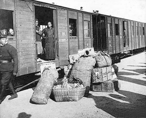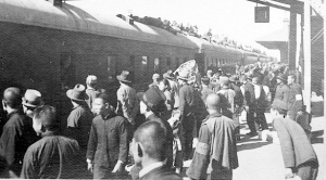 售票人员的奖金跟售票收入是挂钩的,而普通乘客的投诉又常常得不到受理,这一不合理的奖惩制度必然促使他们超额卖票,即使明明知道所有车厢都已经满座了,他们还会继续把票卖出去。图为1914年山东的火车站站台。