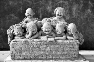 《炕头瞧画书》表现的是上世纪70年代豫东农村儿童在炕头瞧画书的场景,作品温馨、纯朴。评委会给予这样的评语:作品运用三角形的构图,将7位儿童组构于限定空间中,塑他们以欢快的表情紧密地围视于书册间,被书册中有趣的内容所感染而发出会心的笑声,生动而传神。