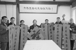 1月16日,周口籍著名诗人、书法家刘迅甫和北京东方中国诗书画院的艺术家们顶着寒风,到北京石景山民俗陈列馆,为附近的农民义务书写春联。这,已经是刘迅甫坚持这一活动的第三十五个年头了。