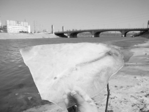 1月24日,天气寒冷,沙颍河周口市区段结冰。