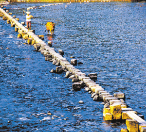北部的楠溪江号称“天下第一江”,溪流清荣峻茂,水清可见游鱼碎石,美得原始古朴,野趣天然。可以乘坐江上竹筏,随曲折滩湾摆荡漂流,远眺青山,心旷神怡。江水下游有至今仍保存完整的传统古村落,村寨建筑具有极高的研究和观赏价值。