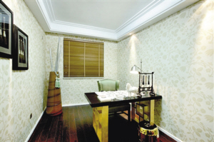 室内空间小的话,可以用小小的一隅隔出书房。这个空间可以简单,满墙淡雅的壁纸,让视线没有过多干扰。小小的书案放上平时阅读的书或笔墨,在室内提笔静气,挥洒自如。