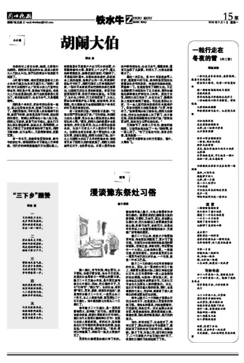 老家的村上有位长辈,姓胡,大家都叫他胡闹。胡闹并不是他的本名,我自小就听大人们这么叫他,至于他的真名叫啥我就不知道了。