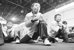 1月31日,男孩们在浙江省临安市一家武术训练馆练习猴拳。