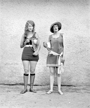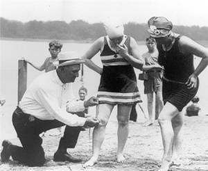 1920年,海滩管理员在量女泳客的游泳衣,确保泳衣不能太短。