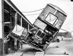 1933年伦敦的双层巴士制造商在验证巴士的安全性。