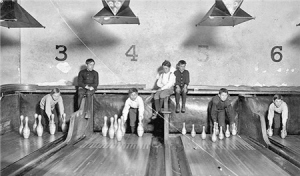 保龄球童,当年的保龄球每次都是人工摆出来的。