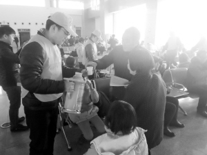 2月1日是农历十二月二十三,也是“小年”,有吃祭灶糖的习俗,志愿者们便买来祭灶糖发给乘客。“他们的服务真周到,值得表扬。”不少乘客纷纷给他们点赞。