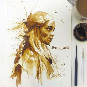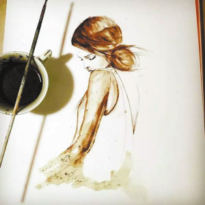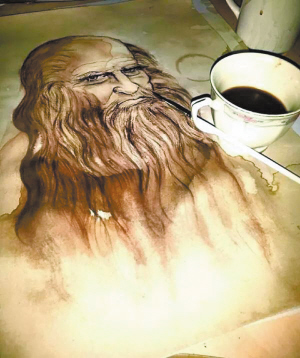 这位外国艺术家不但喜欢喝咖啡,还非常喜欢古典油画。于是,他脑洞大开,用喝剩的咖啡画起古典油画来。