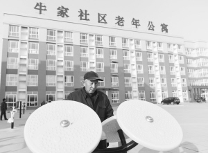 2月2日,山东省邹平县焦桥镇牛家社区老人在老年公寓前的广场上活动。