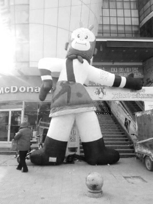 距离猴年春节越来越近。2月4日,周口晚报记者在市区街头看到,一些商场门前摆放的吉祥物——“猴”,赚足了人们的眼球。晚报记者 张志新 摄
