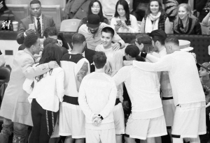 当日,2016年NBA全明星周末名人赛在加拿大多伦多举行,华裔演艺明星吴亦凡参加的加拿大名人队与美国名人队展开较量。新华社发