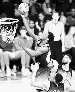 当日,在加拿大多伦多举行的2016年NBA全明星周末新秀赛中,美国队以157比154战胜世界队。新华社发