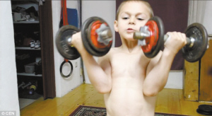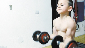 在罗马尼亚,一个10岁的小男孩,刚穿开裆裤就开始健身,现在他已经练就一身肌肉了。