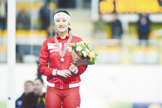 速度滑冰世锦赛 张虹获女子500米季军 当地时间2月13日,张虹在颁奖仪式上。当日,在俄罗斯科洛姆纳进行的世界速度滑冰锦标赛女子500米比赛中,中国选手张虹以75秒688的总成绩获得季军。新华社发