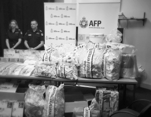 2月15日,在澳大利亚悉尼,澳大利亚警方展示缴获的制毒原料。