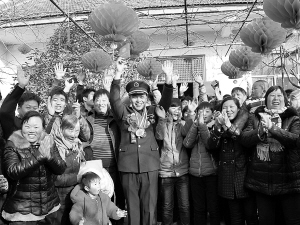 村里群众和赵方军一起欢呼分享立功受奖的喜悦