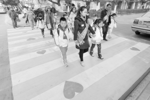 据了解,合肥市安居苑小学所在的陈村路是该校学生上下学的必经之路,过往车辆较多,存在一定的安全隐患。合肥市西园街道安居苑社区与安居苑小学协商,并向交警部门提出申请,经过备案后,邀请中建三局一公司工作人员进行测量、设计,最终设置了这条爱心斑马线。