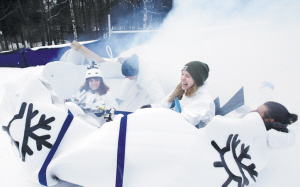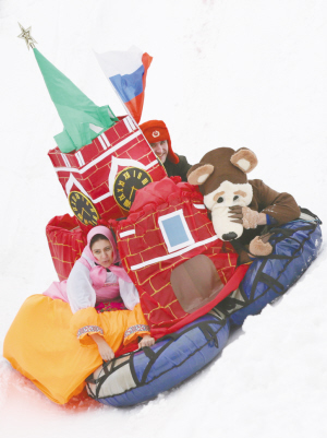 当地时间2016年2月23日,俄罗斯莫斯科,索科尔尼基公园举行第四届“战斗雪橇”比赛。