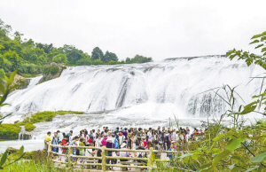 黄果树瀑布是黄果树的核心景区,位于贵州省安顺市镇宁布依族苗族自治县,享有“中华第一瀑”之盛誉,是除尼亚加拉瀑布和维多利亚瀑布之外的第三大瀑布。它是世界上唯一可以从上、下、前、后、左、右6个方位观赏的瀑布,以其雄奇壮阔的大瀑布、连环密布的瀑布群而闻名于海内外,十分壮丽。