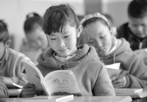 3月1日,拉萨市第一小学五年级二班学生在翻阅新课本。