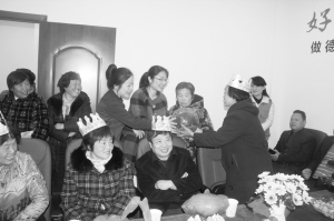 本报讯 2月29日下午,川汇区人和办事处庆丰社区幸福花开小区智慧养老站里一派欢乐祥和,众多爱心企业和爱心人士准备了丰厚的礼品,为庆丰社区2月份过生日的14名老人开了一场别开生面的生日会。