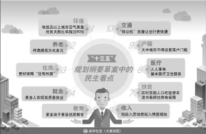 十二届全国人大四次会议3月5日开幕。会上公布的“十三五”规划纲要草案,将引领开创中国发展新境界。“十三五”规划将如何改变你我生活?记者为此梳理解读出十个民生看点。