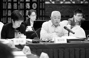 3月6日,全国政协委员梁少培(前右)在发言中说,推动爱国主义教育是每个人的责任。新华社记者 李任滋 摄