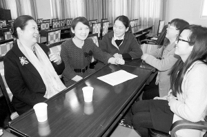 讲座结束后,柳韵(左一)与纪检干部交流。
