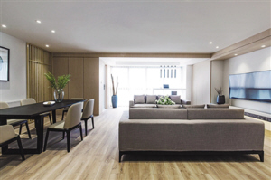 房子面积为150平米左右,房主希望房间具有美式或东方韵味,而且充满现代感,给人自由舒适的感觉。以勒设计的设计师采用断舍离的设计理念,只采用原木色和白色。木质地板和墙面的木质装饰相协调,给人自然轻松的感觉。家具线条流畅柔和,色彩年轻不失稳重。简单的花瓶插入几根枝干,组成一幅意趣深远的景致。(付娟)