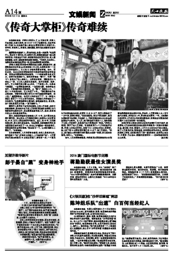 这部《传奇大掌柜》其实在还没定故事时已经打算好,就是要给人艺这些有演技没知名度的年轻演员一次集体亮相的机会,杨立新、何冰、梁冠华,人艺三大台柱为他们站台撑场。除了人艺演员压轴,张旸想着,这部剧还有很多卖点,丰泽园的京味儿传奇,《茶馆》和《天下第一楼》的结合,还有民以食为天、中国梦、万众创业、期望的道德回归……这些都能走进观众心坎里。(金力维)