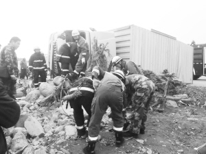 本报讯 3月10日,一辆满载货物的物流车因车速过快发生侧翻,司机被困驾驶室内。随后,消防官兵和附近居民联手将被困司机救出。