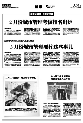 3月份城市管理要忙这些事儿