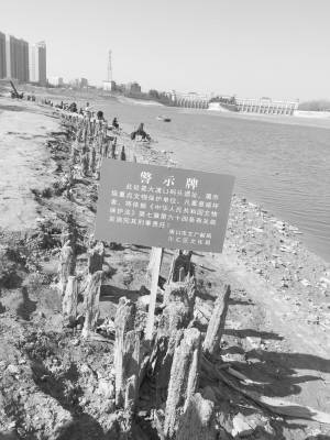 本报讯 3月9日晚,有市民向周口晚报记者反映:位于周口市区中州大道和滨河路交叉口附近的大渡口码头遗址被人肆意破坏,部分排桩被锯断,还有的被连根拔起。3月11日上午,文化部门在遗址处树立警示牌,并告知周口晚报记者:排桩属于常见木材,没有任何收藏和经济价值。