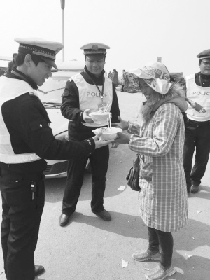 太昊陵庙会开幕以来,每天都大量的车辆和游客涌入淮阳。为了保障交通顺畅,淮阳县交警坚守岗位,经常忙得顾不上吃饭。看他们如此辛苦,周边群众自发为执勤交警送饭。此外,为执勤交警送饭的还有很多警嫂。淮阳交警大队城市中队队长闫本志说:“虽然我们在庙会期间每天工作都在10小时以上,但看到热心群众和民警家属对我们工作的理解和支持,我们感到很欣慰。”晚报记者 朱东一 通讯员 耿凯 摄